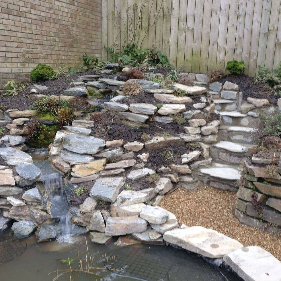 The customer contacted me regarding a leek in the middle of the stream so on looking at the job i informed the customer i would need to move the lower end of the steam so it entered into the pond from a different position but i could make two water falls near the pond